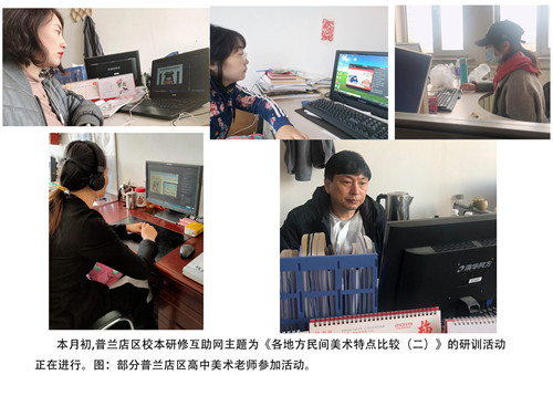 近日,大連高中美術(shù)校本研修互助網(wǎng)培訓(xùn)活動(dòng)繼續(xù)在網(wǎng)絡(luò)上進(jìn)行,本次研訓(xùn)主題是《各地方民間美術(shù)比較(二)》,采用了普蘭店、瓦房店、莊河、長(zhǎng)海四個(gè)地區(qū)學(xué)科負(fù)責(zé)人聯(lián)合講座的形式,參加活動(dòng)的老師為各地方高中美術(shù)教師。普蘭店區(qū)校本研修互助網(wǎng)負(fù)責(zé)人衣勁峰為普蘭店區(qū)做了主題講座。大連教育學(xué)院高中美術(shù)教研員相毅敏老師指導(dǎo)并參與了本次活動(dòng)。