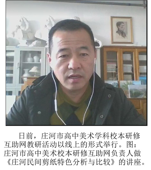 近日,莊河市高中美術(shù)學(xué)科圓滿完成本月的校本研修互助網(wǎng)的活動。由于目前尚處于疫情常態(tài)化防控期,為此,本次活動莊河市與普蘭店、瓦房店、長海三地在網(wǎng)上聯(lián)合舉行。按照學(xué)院高中研訓(xùn)部門相關(guān)要求,本次活動是在上半年6月份活動基礎(chǔ)上的繼續(xù),其主題是“美在民間——各地區(qū)剪紙?zhí)攸c比較(二)”,