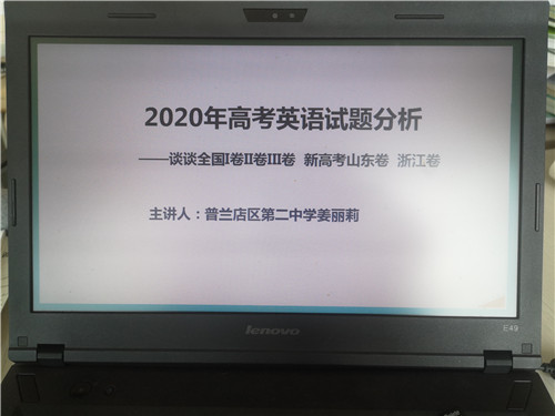 本次研修活動的主題是《新高三高考試題相關(guān)信息教學(xué)研討》,本次教研活動共有三項內(nèi)容:首先,普蘭店第二高級中學(xué)姜麗莉老師做題為《2020年高考英語試題分析》的講座,姜麗莉老師就2020年高考英語試題分析進行全面而精準(zhǔn)的剖析,主要就全國I卷II卷III卷,新高考山東卷和浙江卷進行對比和分析。隨后,單智老師對高考試卷進行了縱向和橫向的全方位的分析點評。最后林紅老師就高三高考試題中需要注意的幾個問題,尤其是作文和讀后續(xù)寫相關(guān)問題給了老師們一些非常好的建議。