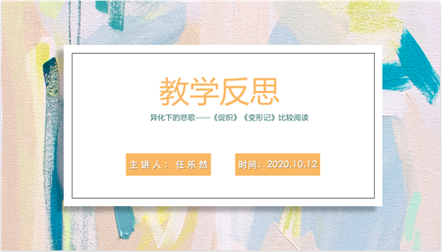 第一環(huán)節(jié),欒老師在線播放了省市評(píng)優(yōu)課的優(yōu)秀課例——大連一中任樂然老師的《異化下的悲歌——<促織><變形記>比較閱讀》。之后,欒老師隨機(jī)邀請(qǐng)老師在線評(píng)課,信息高中的王文博老師和旅順中學(xué)的劉忠明老師即興點(diǎn)評(píng),兩位老師的評(píng)課雖是即興點(diǎn)評(píng),但是切中肯綮,既點(diǎn)明這節(jié)課的優(yōu)點(diǎn),有指出了不足,尤其是王文博老師還進(jìn)一步發(fā)表了自己對(duì)教學(xué)的一些意見和想法。最后欒老師,也對(duì)這節(jié)課做了全面點(diǎn)評(píng),明確指出,這節(jié)課雖然也有很多不足,但這依然是一節(jié)可圈可點(diǎn)的優(yōu)秀課例。