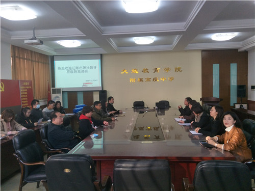 11月24日上午,遼海社副總編輯韓偉、高中理科編輯室主任徐曉宇、資深編輯王維、楊川、大連公司總經(jīng)理唐政儒一行在大連教育學院課程資源中心叢科主任的陪同下來到學院附高調(diào)研,學院附高盛曉紅校長攜相關(guān)校級領(lǐng)導班子成員以及高一年級九個學科教師代表參加了調(diào)研座談交流會。