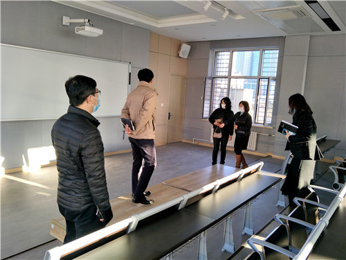 學院教育信息技術中心張輝主任就國家“十四五”發(fā)展規(guī)劃、教育信息化2.0等政策要求,對附中信息化與教育教學融合、智慧校園建設等方面,提出了宏觀指導性建議。張主任建議,附中應就目前基礎設施環(huán)境做好信息化設計規(guī)劃,將信息化應用與教育教學深度融合,促進教學相長。教育信息技術中心將對附中提供人力和技術支持,全力保障附中信息化教學及智慧校園建設;耿壯勛副主任對附中網站建設、微信公眾號的使用、新媒體應用等給出建設性意見和建議;網站和制作室的專業(yè)技術人員,就附中教學的網絡基礎架構、校園宣傳片的制作等給出了解決方案。教育信息技術中心還就附中樂課網教學、特色教室、錄播教室、直播教室及軟件系統(tǒng)的應用提供了具體實施方案。