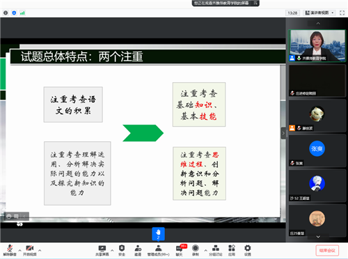 10月11日下午,我市初中語文學科在騰訊會議平臺,圓滿完成了以“2021年中考學業(yè)質量反饋”為主題的教研活動。各縣市區(qū)研訓教師、語文教研組長、九年級備課組長等500余人參加了活動。