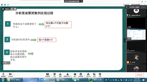 10月12日,大連市初中信息技術(shù)全體研訓(xùn)教師和部分教師在騰訊會(huì)議平臺(tái)上開(kāi)展了線上2021年度第二階段評(píng)優(yōu)展評(píng)活動(dòng)。本次評(píng)優(yōu)展評(píng)活動(dòng)開(kāi)始前,市研訓(xùn)教師趙書(shū)陽(yáng)就信息技術(shù)跨學(xué)科主題學(xué)習(xí)、學(xué)科教師開(kāi)展教學(xué)科研和學(xué)科教師自主學(xué)習(xí)內(nèi)容等方面做了簡(jiǎn)要說(shuō)明和指導(dǎo)。