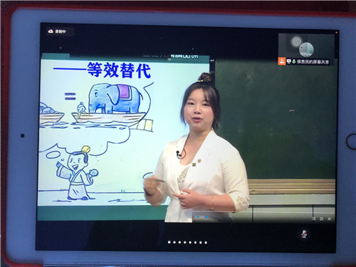 大連20高中的劉玲老師上了《力的合成與分解》一課,她用“曹沖稱象”這個故事引課,過渡到合力與分力也是等效替代的關系,很是巧妙。從同一直線上兩力的合成,到互成角度兩力的合成,從猜想到實驗探究,找到力的合成遵守平行四邊形定則,再到力的分解同樣遵守平行四邊形定則,這也是矢量運算的法則,從而再對矢量標量重新加以認識。例題從圖解法到計算法,習題中兩力夾角變化得出合力大小范圍。整堂思路清楚,邏輯嚴謹,語言精練。課后劉玲老師分享了自己的教學設計和上課體會,特別是對單元備課和深度學習有了新的感悟。