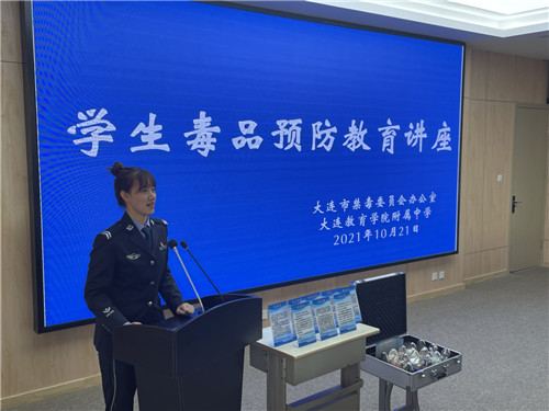 為進一步落實在校學生毒品預防教育“五個一”活動的開展,增強學生遠離毒品、積極參與禁毒的意識,10月21日下午,學院附中邀請大連市禁毒委員會辦公室、大連市禁毒支隊專職講解員楊那警官在301多媒體報告廳為全校師生帶來了一場生動的禁毒教育講座。會議由政教處方偉副主任主持,全校團員、學生會成員、各班學生代表在主會場301現(xiàn)場聆聽報告,其余學生在本班級通過本學期剛投入使用的5G課堂觀看現(xiàn)場直播,會場秩序井然。