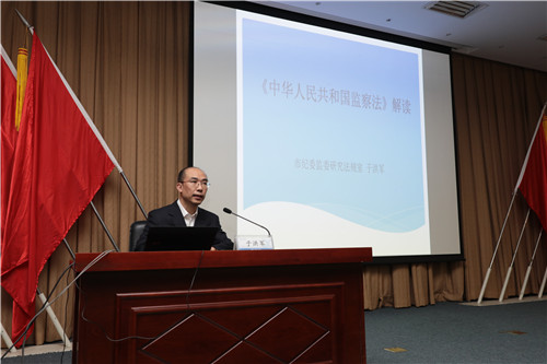在輔導(dǎo)報(bào)告中,于洪軍副主任深刻闡釋了監(jiān)察法出臺(tái)的背景、憲法依據(jù),深入淺出講解了《監(jiān)察法》的主要內(nèi)容和相關(guān)法規(guī),對(duì)部分條文進(jìn)行了詳細(xì)解讀。其中,圍繞監(jiān)察機(jī)關(guān)的工作職責(zé)、監(jiān)察范圍、監(jiān)察權(quán)限和監(jiān)察程序等作了系統(tǒng)全面、重點(diǎn)突出、生動(dòng)鮮明的解讀和案例說(shuō)明。