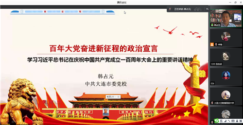 本次通識培訓(xùn)邀請了中共大連市委黨校馬克思主義理論教研部副主任、大連市委宣講團(tuán)成員韓占元副教授以及大連市第二十高級中學(xué)學(xué)生發(fā)展指導(dǎo)中心主任、國家級骨干教師孫偉清老師做主題報告。韓以教授以《百年大黨奮進(jìn)新征程的政治宣言》為題,帶領(lǐng)老師們認(rèn)真學(xué)習(xí)了習(xí)近平總書記在慶祝中國共產(chǎn)黨成立一百周年大會上的重要講話精神,強(qiáng)調(diào)要把學(xué)習(xí)的成效不斷轉(zhuǎn)化為工作的動力和實(shí)效;孫老師以《不忘教育初心,做學(xué)生的好老師》《班主任專業(yè)成長的思考》為題做了兩場報告,分別解讀了《中學(xué)教師專業(yè)標(biāo)準(zhǔn)(試行)》《中小學(xué)教師職業(yè)道德規(guī)范》以及《新時代中小學(xué)教師職業(yè)行為十項(xiàng)準(zhǔn)則》等政策性文件,并以生動的案例包括自己的專業(yè)成長經(jīng)歷為載體,詮釋了做一名好老師、做一名優(yōu)秀班主任所應(yīng)具備的素質(zhì)和能力。