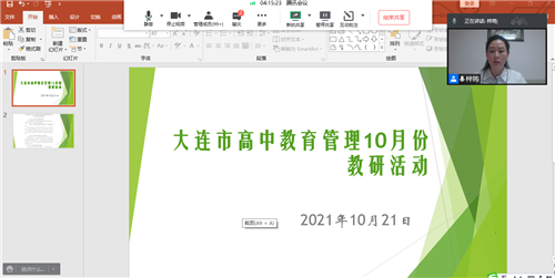 10月21日,大連市高中教育管理10月份研訓(xùn)活動在騰訊會議上如期進(jìn)行。活動由學(xué)院高中研訓(xùn)中心教管室研訓(xùn)教師羅萍老師主持,大連市各普通高中副校長、教務(wù)主任等共計120余人參加了此次活動。
