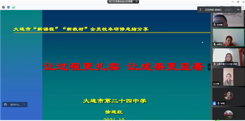 本次活動的主題是全員研修活動總結(jié)。首先由羅老師對6月-9月舉行的“大連市普通高中新課程新教材實施全員研修”活動情況進(jìn)行了總結(jié),以中國教研網(wǎng)提供的學(xué)習(xí)時長為依據(jù),通報了各校必修課程的完成情況;以學(xué)校上交的研修總結(jié)和研修成果為依據(jù),概述了各校研修活動組織、開展的優(yōu)點與不足。其次有5所學(xué)校進(jìn)行了研修活動的經(jīng)驗分享,分別是大連市第二十四中學(xué)、莊河市第五高級中學(xué)、大連市第十六中學(xué)、大連櫻華高級中學(xué)以及開發(fā)區(qū)第八高級中學(xué),5所學(xué)校都能緊緊圍繞研修課程內(nèi)容,認(rèn)真、扎實開展與之相關(guān)的主題式校本教學(xué)研討活動,并及時進(jìn)行研修成果的交流分享,不斷推動雙新落實;同時,各學(xué)校又突顯了自己的亮點與特色,為其他兄弟學(xué)校提供了很有價值的參考與借鑒。