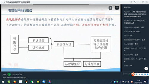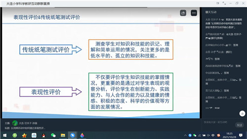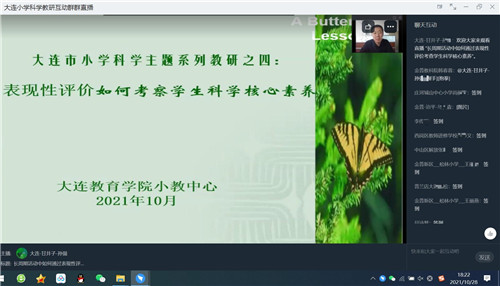 2021年10月28日下午,大連市小學(xué)科學(xué)主題系列教研之四:表現(xiàn)性評價如何考察學(xué)生科學(xué)核心素養(yǎng)研訓(xùn)活動,在釘釘平臺展開。活動由大連教育學(xué)院小學(xué)研訓(xùn)中心隋曉紅老師組織,甘井子區(qū)小學(xué)科學(xué)研訓(xùn)教師孫強老師主持,大連市全體科學(xué)教師在線參與教研。