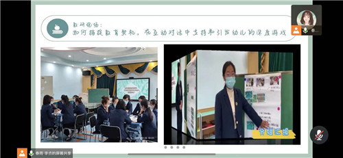 10月26日,學(xué)前研訓(xùn)中心組織召開了“觀察幼兒解讀行為支持學(xué)習(xí)”線上交流分享活動(dòng)。中山區(qū)春雨幼兒園分享了本園參與式教研活動(dòng)的全過程。李貞園長(zhǎng)以“如何捕捉教育契機(jī),在互動(dòng)對(duì)話中支持和引發(fā)幼兒的深度游戲”為題,與參會(huì)的幼兒園園長(zhǎng)和教師進(jìn)行了交流分享。此次活動(dòng)通過春雨幼兒園教研活動(dòng)的直觀展示,重在引領(lǐng)教師探索以游戲?yàn)楹诵囊氐恼n程實(shí)施策略。此次活動(dòng)由李曉玫老師主持。參加主題教研活動(dòng)有項(xiàng)目組的幼兒園園長(zhǎng)及教師30余人。