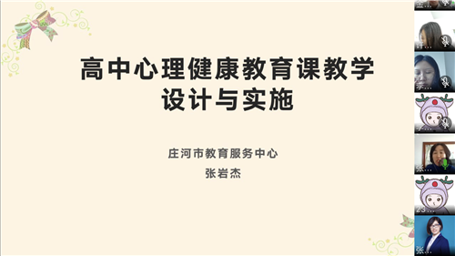 本次培訓(xùn)依托企業(yè)微信,采取線上培訓(xùn),內(nèi)容包括四個模塊,分別是“《大連市普通高中心理健康教育課程規(guī)劃》解讀”“心理健康教育課的設(shè)計與實(shí)施”“以心育心,構(gòu)建學(xué)校發(fā)展性心理健康教育體系”“高中學(xué)校心理健康教育校本課程建構(gòu)”以及“《贊美的藝術(shù)》和《價值面面觀》課展示和交流”。授課教師除了德育心理研訓(xùn)中心的研訓(xùn)教師李鳳杰外,還有莊河市中小學(xué)心理健康教育心理輔導(dǎo)中心主任張巖杰和大連經(jīng)濟(jì)技術(shù)開發(fā)區(qū)第十高級中學(xué)何竟軒主任、大連市第十三中學(xué)尹小磊主任、大連市第二中學(xué)孫晶老師、大連育明高級中學(xué)石婧老師。