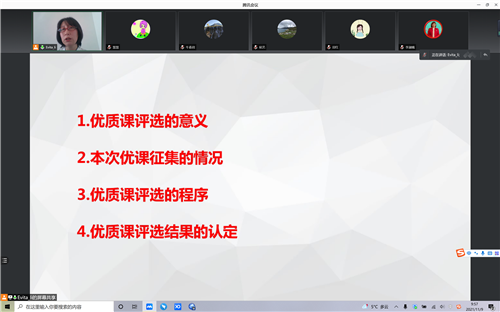 在本次活動中,李娟老師針對“優(yōu)質(zhì)課評選的意義”“本屆優(yōu)質(zhì)課征集情況匯報”“優(yōu)質(zhì)課評選基本程序”“優(yōu)質(zhì)課評選結(jié)果認定”四個方面進行了說明。相關評委對優(yōu)質(zhì)課的評價標準進行了細致認真的研討,明確評選方向,制定評選細則,對后續(xù)的評選工作做出了充分的準備。