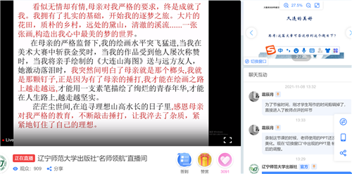 11月8日下午,伴著一場紛紛揚揚的冬日瑞雪,初中語文學科在遼寧師范大學出版社公眾號的網(wǎng)絡直播間,以錄播的方式召開了一場作文教學研究盛會。活動由大連市第十七中學和遼師出版社承辦,大連市各區(qū)市縣教研員、語文教師,近2000余人參加了活動。
