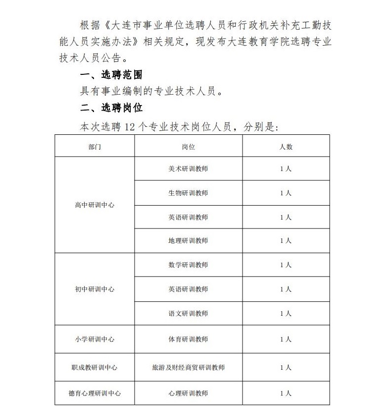 大連教育學(xué)院關(guān)于選聘專業(yè)技術(shù)人員的公告