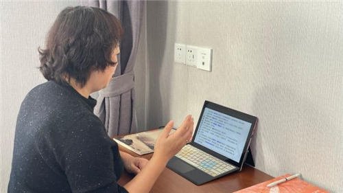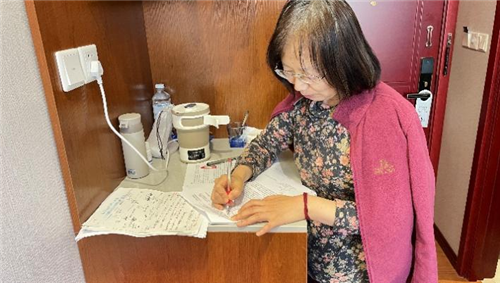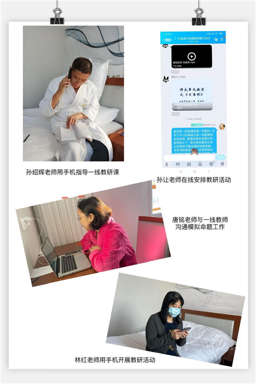 原計(jì)劃學(xué)院高三團(tuán)隊(duì)莊河沉浸周指導(dǎo)工作只有四天,很多人并沒(méi)有帶電腦,因此所有工作都是用手機(jī)開(kāi)展的。八位研訓(xùn)教師平均年齡55歲,最年輕的也已經(jīng)49歲。他們用手機(jī)查閱資料、與一線教師溝通交流,對(duì)于這些老教師來(lái)說(shuō)非常不易,很多人都眼花眼澀、頭暈?zāi)X脹,但壓在肩上的工作讓他們已無(wú)暇顧及自己身體的不適,也忘記了家里還有等著他們的家人,等著他們?nèi)兔φ疹櫟膶O輩以及患病的愛(ài)人……尤其是腳踝受傷的徐瑞洋老師,還依然堅(jiān)持跑前跑后地為大家服務(wù),召開(kāi)“團(tuán)建會(huì)”,通報(bào)情況,讓大家不信謠、不傳謠,安心待在賓館。大家親切地稱徐老師是混沌時(shí)期的“定海神針”!