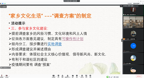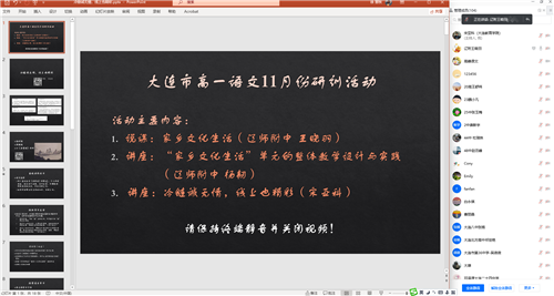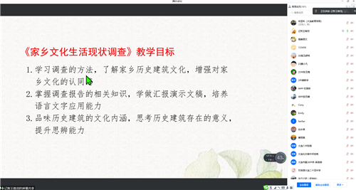 2021年11月15日下午,高中研訓(xùn)中心語文學(xué)科組研訓(xùn)教師宋亞科通過騰訊會議,在線組織了一次主題為“單元教學(xué)設(shè)計策略與實施之第四單元“家鄉(xiāng)文化生活”教學(xué)觀摩”的研訓(xùn)活動。