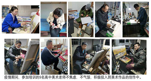 10月31日——11月5日是大連市教育局安體衛(wèi)藝處與大連大學(xué)美術(shù)學(xué)院組織“大連市中小學(xué)美術(shù)骨干教師培訓(xùn)”的時(shí)間,正在老師們?nèi)σ愿邦^投入到緊張的培訓(xùn)中時(shí),突發(fā)的疫情打亂了原有的培訓(xùn)計(jì)劃,按照當(dāng)?shù)胤揽刂笓]部門(mén)的管控要求,培訓(xùn)的老師原地隔離,不得返回。參訓(xùn)的9名高中美術(shù)老師在學(xué)院高中教師中心相毅敏的帶領(lǐng)下,克服焦慮,積極向上,按照市教育局和臨時(shí)黨支部的部署有條不紊的繼續(xù)參訓(xùn),用畫(huà)筆和剪刀創(chuàng)作美術(shù)作品,以實(shí)際行動(dòng)戰(zhàn)勝疫情。