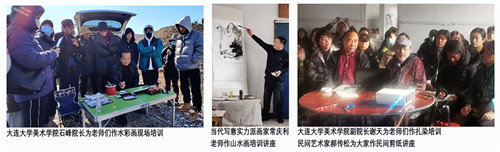 參加技能培訓的9名高中美術老師在學院高中研訓教師美術教研員相毅敏的帶領下,積極投入到技能培訓中。他們高效利用好培訓期間的每一分鐘,白天他們認真聆聽畫家講課、向畫家虛心請教;克服天寒地凍的環(huán)境因素,走進大自然,用心觀察、用心靈感悟、用畫筆描繪秋末冬初大自然的靜謐、凝重與空靈。晚間在大連大學民藝家的帶領下,學習藍印花布的基礎知識與基本技能并應用到自己的民間藝術實踐中去……。大連大學美術學院石峰院長和大連市美術家協(xié)會的畫作點評,都給予高中美術老師很高的專業(yè)評價,石院長認為,高中美術老師刻苦勤奮,繪畫技能嫻熟有自己的風格與主張,特別是旅順三高中王艷老師的作品別致的構圖、雅致的灰色調,雖然畫幅不大,但卻產生了“四兩撥千斤”的震撼效果。石院長和其他畫家還對高中美術老師提出自己的希望。
