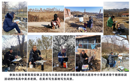 按照大連市教育局《關于組織開展大連市中小學美術骨干教師培訓工作的通知》文件要求,大連高中共有9名美術教師參加了由大連市教育局安體衛(wèi)藝處與大連大學美術學院共同舉辦的技能培訓,時間為10月31日——11月5日,培訓地點為莊河市大營子鎮(zhèn)靴子溝歇馬山莊寫生基地。