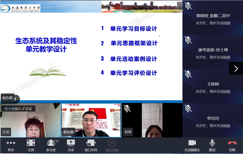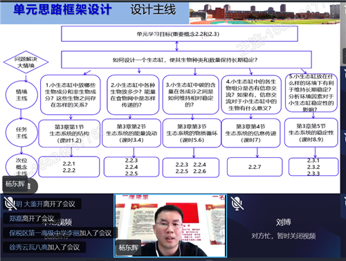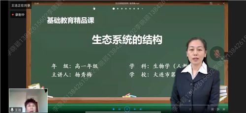 此次線上活動主要安排了三大方面內(nèi)容:首先由大連市第二中學的楊東輝老師結合暑期國家級示范區(qū)全員研修培訓的內(nèi)容進行了《基于核心素養(yǎng)的高中生物學選擇性必修2第3章的單元教學分析》;隨后,大連市第三十六中學的楊秀梅老師進行了基于核心素養(yǎng)的高中生物學學科選擇性必修2第3章第1節(jié)生態(tài)系統(tǒng)的結構的一節(jié)精品課的展示;最后大連教育學院的高中生物學學科的研訓教師王潔老師根據(jù)其參加評比的經(jīng)驗,并結合大連市獲得省級一等獎選手的經(jīng)驗教訓做了“2021年普通高中精品課設計及上傳需要注意的問題”的專題講座。