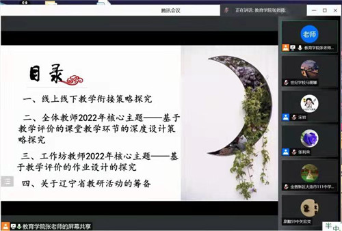 冰霜雨雪相約去,春風(fēng)桃李自然來。在黨和政府的堅(jiān)強(qiáng)領(lǐng)導(dǎo)下、在全市七百多萬人民的共同努力下,12月6日,大連市全市各級各類學(xué)校恢復(fù)線下教學(xué)。近一個(gè)月的線上教學(xué)是非常時(shí)期的非常之舉,居家學(xué)習(xí)也給學(xué)生的身體、心理帶來了巨大的挑戰(zhàn)。為有效銜接線上線下道德與法治學(xué)科教學(xué),12月7日,在市教研員張雪梅老師的主持下,全市召開了一次線上的教研活動(dòng)。全市道德與法治工作坊教師、各區(qū)市縣教研員、各學(xué)校教研組長共同參與了本次教研活動(dòng)。