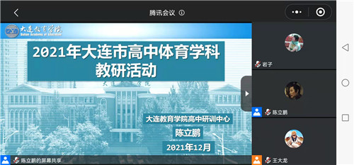 2021年12月8日,大連市高中《體育與健康》學(xué)科線上教研活動通過騰訊會議順利進(jìn)行。本次研訓(xùn)活動由學(xué)院高中研訓(xùn)中學(xué)體育學(xué)科研訓(xùn)教師陳立鵬老師主持,全市百余位高中體育教師參加。