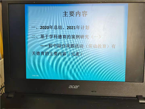 活動由市初中研訓(xùn)教師主持。活動包括2020年研訓(xùn)工作總結(jié)、2021年工作計劃、基于學(xué)科德育的主要內(nèi)容三大部分。首先由翟老師結(jié)合2020年的教研工作做了全面總結(jié),對2021年的教研工作提出了建議和要求,重點闡述了基于學(xué)科德育的主要內(nèi)容;然后,與會教師通過多種形式參與研討交流。