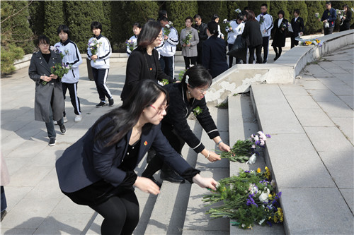 在巍峨矗立的英雄紀(jì)念碑前,全體師生向革命烈士敬獻(xiàn)鮮花,深切緬懷烈士們?yōu)橹腥A民族獨(dú)立解放拋頭顱、灑熱血的英雄壯舉,深切悼念在建設(shè)繁榮富強(qiáng)新中國歷程中奉獻(xiàn)、犧牲的英烈。