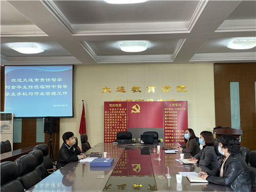 4月1日上午,大連市第五責(zé)任區(qū)責(zé)任督學(xué)、大連教育學(xué)院教師教育辦公室劉金華主任蒞臨大連教育學(xué)院附高督導(dǎo)學(xué)生手機(jī)與作業(yè)管理工作。盛曉紅校長攜校級領(lǐng)導(dǎo)班子相關(guān)成員全程陪同。