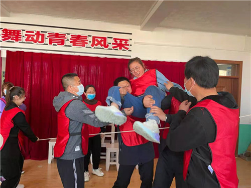 活動(dòng)開始,全體老師在“劃拳接龍”和“拍拍操”熱身活動(dòng)中,放松身心,氣氛十分愉悅。“桃花朵朵開”讓老師們分成了三組,各組在隊(duì)長的帶領(lǐng)下,穿齊隊(duì)服,取隊(duì)名,定隊(duì)標(biāo),畫隊(duì)旗。“激情四射”、“粉墨登場”和“一朵小紅花”各顯神通,充分展示了老師們團(tuán)結(jié)協(xié)作的風(fēng)采。