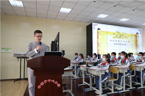活動中,大家首先參觀了辛寨子中心小學(xué)的書法特色校園文化內(nèi)容。隨后,參會老師共同觀摩辛寨子中心小學(xué)于海艷老師的六年級書法課《9.收放有序》,重點感受書法課堂教學(xué)流程以及教材的使用。課后,楊冬老師結(jié)合于海艷老師的這節(jié)書法課堂教學(xué)給參會老師講解了書法課堂教學(xué)的整體流程,大致理清書法課的框架,并簡要分析了每個精細(xì)環(huán)節(jié)的具體做法。楊老師還深入分析了現(xiàn)行的書法教材、練習(xí)冊、配套光盤等材料的特點和使用建議。參會老師就本次講座的內(nèi)容進(jìn)行了簡要的研討交流,楊老師再次就老師提出的典型問題進(jìn)行了解答。研討交流后,楊老師在小結(jié)中還對下一步各區(qū)市縣在書法課堂和教材使用方面的工作再次給出了自己的建議和期望。他強調(diào)下一步的工作重點是深入到課堂中去,了解基層書法老師的落實情況,進(jìn)一步收集老師們在實際教學(xué)中遇到的問題,以便后續(xù)持續(xù)跟進(jìn)的輔導(dǎo)。活動還組建了大連市書法骨干教師群,方便后續(xù)開展工作。