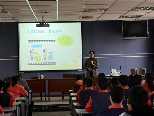 王春玲老師從“鎖定目標(biāo)去分解”、“換個(gè)角度去思考”和“積極暗示去肯定”三個(gè)方面為初三師生祛除考前焦慮,消解日常困惑,身心清爽,超然釋懷。