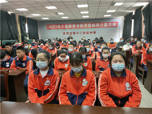 2021年4月7日下午,大連教育學(xué)院考前心理輔導(dǎo)公益活動(dòng)走進(jìn)莊河市第二十八初級(jí)中學(xué)和莊河市第十二初級(jí)中學(xué),240多名初三學(xué)生和教師全程參與講座。
