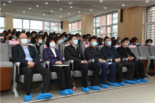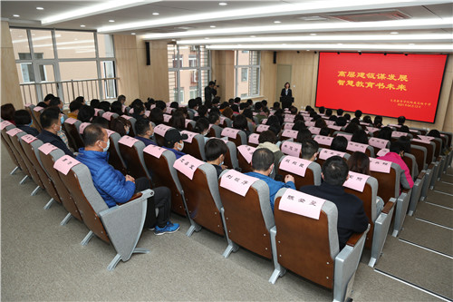 4月12日下午,學院附高全體教職員工懷著無比激動的心情齊聚301多媒體報告廳,坐在標有自己名字的專屬座位上,高清LED電子屏紅紅火火地把“高層建瓴謀發(fā)展智慧教育書未來”十四個金燦燦的大字送入大家的眼簾,會場布置井然有序,與會教工頓生別樣溫馨的感觸。學院黨委副書記萬鵬飛攜附高理事會成員一行7人在全體教職員工的熱烈掌聲中步入會場。盛曉紅校長主持會議。