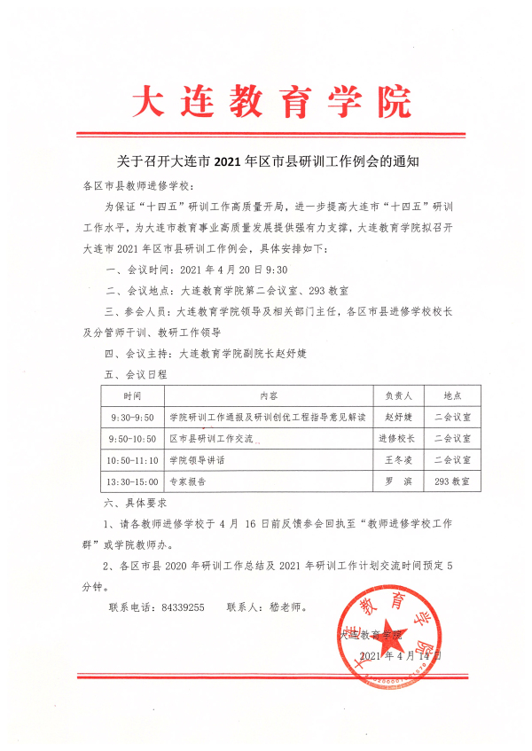 關于召開大連市2021年區(qū)市縣研訓工作例會的通知
