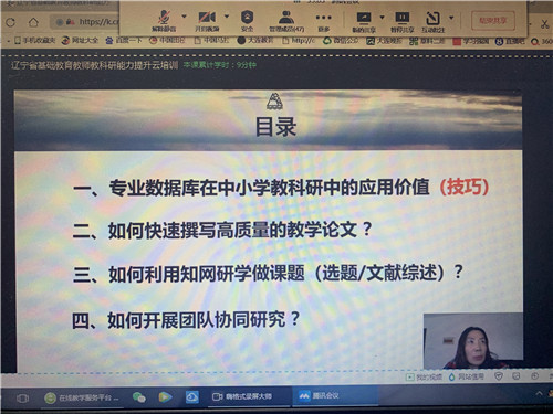 本次教研活動還組織教師共同參加了“遼寧省基礎(chǔ)教育教師教科研能力提升云培訓”的活動,圍繞基礎(chǔ)教育教師如何提高專業(yè)數(shù)據(jù)運用、學術(shù)研究、科研選題和論文寫作能力等內(nèi)容的直播培訓。
