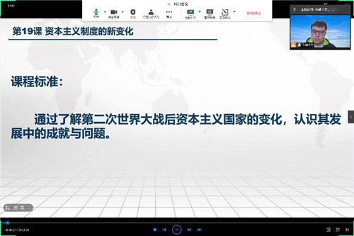 本次活動圍繞《中外歷史綱要下》第19課《資本主義國家的新變化》展開。第一個環(huán)節(jié)由紅旗高中的王少博老師做了本課的教學(xué)設(shè)計解讀,王老師通過展示材料帶領(lǐng)大家先后分析了國家的宏觀調(diào)控、科學(xué)技術(shù)的新發(fā)展、社會結(jié)構(gòu)的新變化及“福利國家”與社會運動四個部分內(nèi)容,牢牢圍繞生產(chǎn)力這一核心因素,科學(xué)地分析了資本主義國家的宏觀調(diào)控從帶來巨大紅利到導(dǎo)致經(jīng)濟滯脹的原因。整堂課圍繞著努力解決矛盾——能否消除矛盾——如何看待矛盾進行探究。