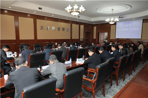 趙妤婕副院長介紹了學院2021年度研訓工作思路與工作重點。一是聚焦主題提升教研質(zhì)量;二是項目牽動提高培訓實效;三是強化教育科研職能發(fā)揮;四是認真做好監(jiān)測評估工作;五是加強區(qū)域教育資源建設。趙妤婕副院長還圍繞《大連教育學院研訓“創(chuàng)優(yōu)工程”指導意見》,對“創(chuàng)優(yōu)工程”的提出背景、設計原則、實施原則以及實施路徑等進行了詳細解讀。