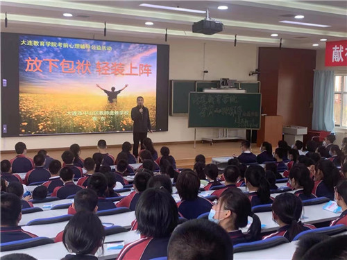 為了幫助學生調(diào)節(jié)考前狀態(tài),滿懷信心輕裝上陣,4月21日下午,大連教育學院考前心理輔導公益活動走進高新區(qū)第一中學,為初三全體師生帶來“放下包袱輕裝上陣”為主題的考前公益講座。