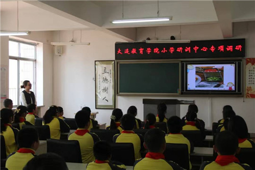 4月25日,大連教育學(xué)院小學(xué)研訓(xùn)中心于業(yè)宏主任和王芳副主任及語(yǔ)數(shù)英學(xué)科研訓(xùn)教師一行十人來(lái)到玉華小學(xué),進(jìn)行課程與教學(xué)工作的現(xiàn)場(chǎng)調(diào)研。沙河口區(qū)進(jìn)修學(xué)校劉亞莉副校長(zhǎng)和小教部劉正富主任及語(yǔ)數(shù)英學(xué)科教研員參與此次調(diào)研工作。中心王玉玲、溫曉慧兩位英語(yǔ)教研員對(duì)玉華小學(xué)英語(yǔ)課堂教學(xué)、學(xué)科作業(yè)與學(xué)科實(shí)踐活動(dòng)的實(shí)施狀況展開(kāi)調(diào)研。