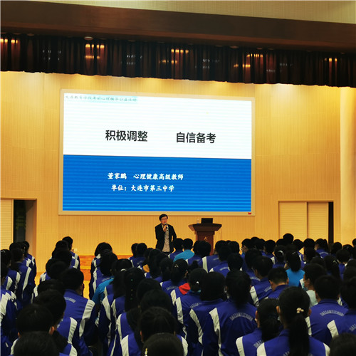 為了有效緩解學(xué)生考前心理壓力,調(diào)整學(xué)生的心理狀態(tài)。近日,大連教育學(xué)院考前公益活動(dòng)走進(jìn)大連市第一中學(xué),主講專家董家鵬老師為近500名高三學(xué)生做了題為《積極調(diào)整自信備考》的講座。
