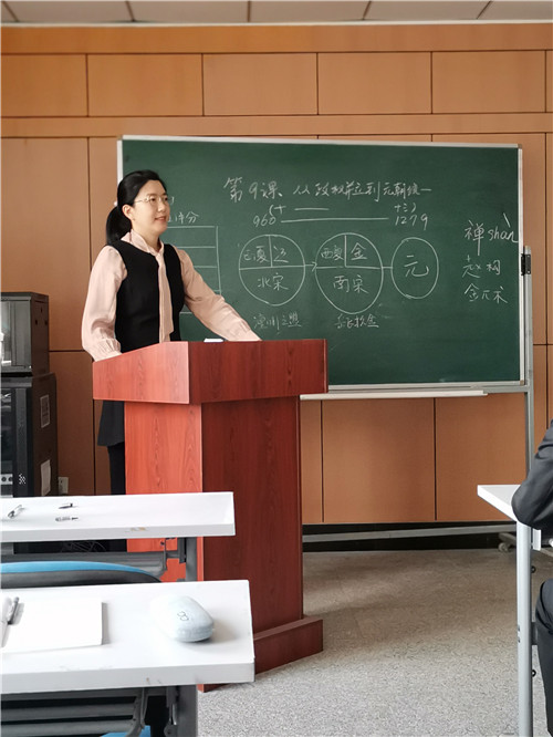 本次活動(dòng),選擇中國(guó)歷史比較復(fù)雜的“政權(quán)并立到元朝統(tǒng)一”這一歷史時(shí)期內(nèi)容,由大連足球?qū)W校王欣老師主講,大連職工大學(xué)李喆老師負(fù)責(zé)對(duì)課程思政的講解。王老師不但很好地完成了本次研訓(xùn)的主旨要求,同時(shí)也為青年教師作了中職歷史課的備課、教學(xué)設(shè)計(jì)、授課各環(huán)節(jié)示范,將復(fù)雜的歷史過(guò)程和歷史解讀放在“政治、經(jīng)濟(jì)、民族關(guān)系、外交、文化”的大框架內(nèi),用“識(shí)圖說(shuō)史”“看圖說(shuō)史”“拓展探究”三項(xiàng)任務(wù),完成本課內(nèi)容教學(xué)任務(wù)。同時(shí)也將課程思政和歷史核心素養(yǎng)巧妙地融入課堂教學(xué)的各個(gè)環(huán)節(jié)。不但做了示范,也給了方法。