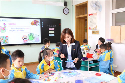 匯報(bào)結(jié)束后,各學(xué)科研訓(xùn)教師紛紛深入課堂開(kāi)展調(diào)研工作。美術(shù)研訓(xùn)教師魯毅聽(tīng)、評(píng)了一年級(jí)田芳園老師的《手形的聯(lián)想》一課,充分肯定了教師在保持學(xué)生興趣、啟發(fā)學(xué)生想象力和創(chuàng)造力等諸方面所做的設(shè)計(jì),同時(shí)也針對(duì)授課時(shí)間縮短所帶來(lái)的美術(shù)課堂的變化等問(wèn)題與教師們展開(kāi)了熱烈的研討。