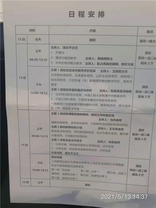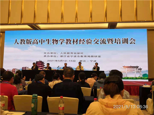 2021年5月13日~14日,人教版高中生物學(xué)教材經(jīng)驗交流暨培訓(xùn)會在浙江省寧波市舉行,全國省級、地市級教研機構(gòu)的高中生物學(xué)科教研員共計400余人參加了此次會議。