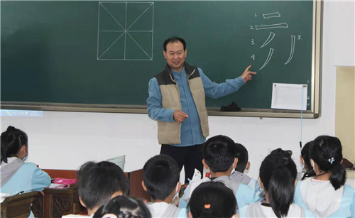 第一節(jié)課是工人村小學(xué)任永良老師執(zhí)教的《左偏旁》。任老師在課堂上采用自己獨創(chuàng)的方法領(lǐng)著學(xué)生書空卻不空的感受運筆技巧,引領(lǐng)孩子們掌握結(jié)構(gòu)規(guī)律,對孩子們的各種學(xué)習(xí)習(xí)慣也有著自己獨特的教學(xué)方法和要求。第二節(jié)課是紅巖小學(xué)的孫桂海老師執(zhí)教的《橫撇》。老師從復(fù)習(xí)相關(guān)單一筆畫的寫法入手,引導(dǎo)孩子們觀察總結(jié)出“橫撇”這個復(fù)合筆畫的特點和書寫方法,并帶著孩子們練習(xí)書中例字,給學(xué)生范寫講解的時機也把控非常恰當(dāng),采用微課教學(xué)和教師隨時示范兩種情況結(jié)合的方式,讓學(xué)生更有效快捷掌握本課的書寫要點。兩節(jié)書法課都能在教學(xué)中體現(xiàn)出字源字理、中華傳統(tǒng)美德等優(yōu)秀傳統(tǒng)文化方面的素養(yǎng)滲透,更好的呈現(xiàn)了“教書育人”兩方面的工作結(jié)合。