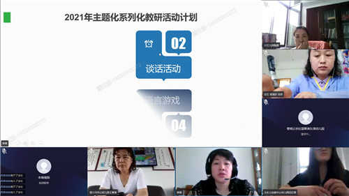 根據(jù)疫情防控要求,本次活動(dòng)仍創(chuàng)造性地采用線(xiàn)上線(xiàn)下融合教研的方式,將現(xiàn)場(chǎng)觀(guān)摩和互動(dòng)研討環(huán)節(jié)提前在基層幼兒園開(kāi)展,6月8日-15日,全市四星級(jí)幼兒園以園為單位,線(xiàn)下組織全體教師觀(guān)摩高新區(qū)第三實(shí)驗(yàn)幼兒園陳冰、劉佳佳和大連海軍艦艇學(xué)院幼兒園于春雷三位教師組織的語(yǔ)言領(lǐng)域談話(huà)活動(dòng),并圍繞課程實(shí)施開(kāi)展評(píng)價(jià)研討,同時(shí)上交研討評(píng)價(jià)意見(jiàn)和現(xiàn)場(chǎng)研討活動(dòng)照片。6月17日下午,由研訓(xùn)教師利用小魚(yú)易連軟件組織開(kāi)展線(xiàn)上交流研討活動(dòng)。通過(guò)實(shí)踐反思、交流研討和點(diǎn)評(píng)指導(dǎo)、專(zhuān)題培訓(xùn)等形式,結(jié)合教師的實(shí)踐反思和談話(huà)活動(dòng)的基本概述、核心經(jīng)驗(yàn)、基本結(jié)構(gòu)和評(píng)價(jià)要點(diǎn),有針對(duì)性地進(jìn)行點(diǎn)評(píng)和專(zhuān)題培訓(xùn)。