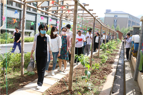此次調(diào)研別開生面,活動由參觀該校山腳下的學(xué)生勞動種植基地“本草園”開始。看見各年級的孩子們在以班級為單位的土地上蒔花鋤草,培育新苗,收獲果實,陽光下的張張笑臉讓調(diào)研團隊充分感受到學(xué)校勞動教育的喜人成就。調(diào)研了解到,得天獨厚的地理位置使得學(xué)校可以因地制宜,以本草園、青花閣、藤蔓廊、堆肥房等為代表的15個勞動場域采用多種方式構(gòu)建并落實了具有時代特征的勞動教育體系。校長范立霞在隨后的調(diào)研匯報中對龍王塘中心小學(xué)“和樂好學(xué),止于至善”教育理念體系,“和樂”課程結(jié)構(gòu),“小課堂”自主學(xué)習(xí)教學(xué)策略研修,“施愛弱苗”管理體系,勞動教學(xué)目標(biāo)體系,自主生產(chǎn)勞動評價體系,作業(yè)性學(xué)習(xí)實施方案等情況逐一做了介紹。中心各學(xué)科研訓(xùn)教師在范校長匯報后走入課堂,切身實地了解“小課堂”教學(xué)模式。語文教研員王芳、顏廷安、王舒針對語文低段獨立學(xué)習(xí)、小組學(xué)習(xí)、主體學(xué)習(xí),中段自主課堂、互助課堂、分享課堂,高段自主反思、交流反思、評價反思的“小課堂”自主學(xué)習(xí)教學(xué)策略的落實情況展開調(diào)研,觀察師生互動、小組活動、生生互動的課堂真實表現(xiàn),掌握了調(diào)研第一手資料。