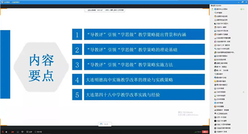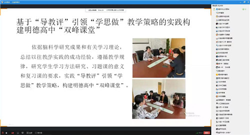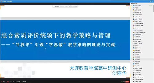 2021年6月25日下午高中教育管理教研室舉辦了線上研訓(xùn)活動(dòng),本次活動(dòng)題目是《綜合素質(zhì)評(píng)價(jià)統(tǒng)領(lǐng)下的教學(xué)策略——“導(dǎo)教評(píng)”引領(lǐng)“學(xué)思做”教學(xué)策略理論與實(shí)踐》,這是本年度高中教育管理教研室活動(dòng)主題下第二部分內(nèi)容。各高中教學(xué)副校長(zhǎng)、教導(dǎo)主任和年級(jí)主任、德育副校長(zhǎng)、德育主任共參加本次活動(dòng),活動(dòng)由羅萍老師組織。